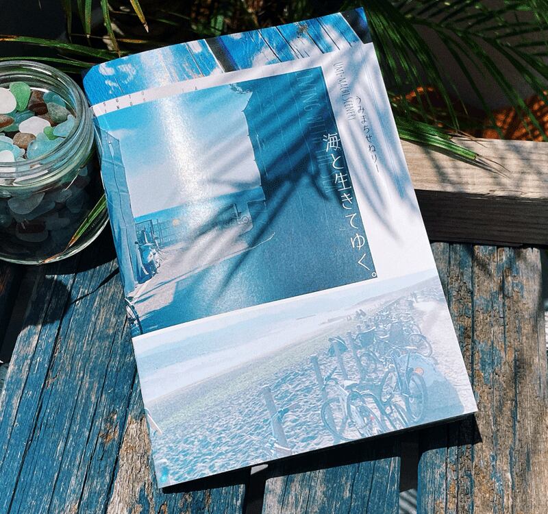 海辺の町の写真と、そこに住み暮らしてゆく中で生まれてきた言葉で綴る海辺の町の生活の柄たち。愛しいささやかな日々をデザインした慎ましいグラフィックZINE。
